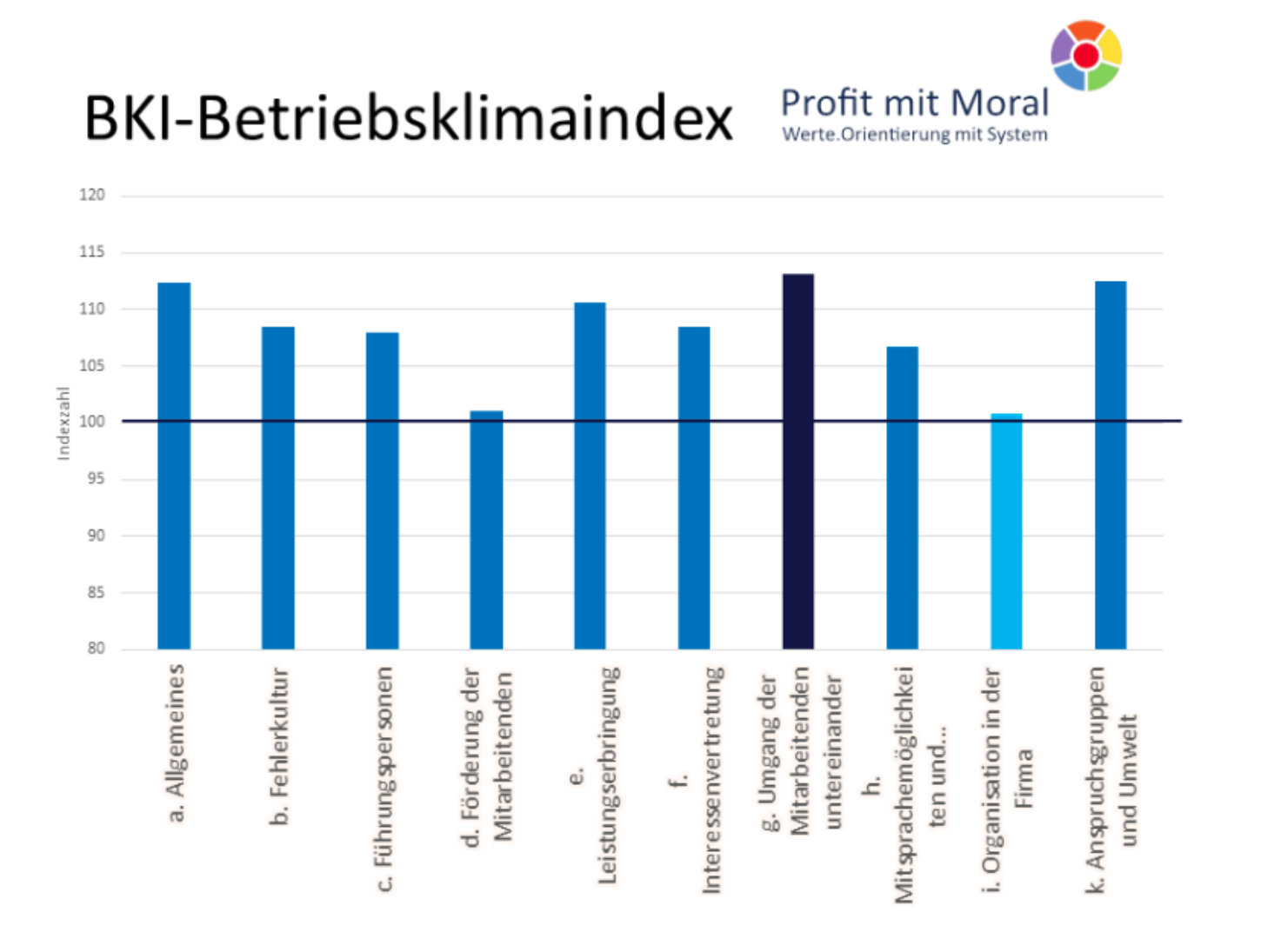 - konkrete Index-Zahl als Maßzahl Ihres Betriebsklimas